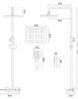 - W zestawie: bateria, deszczownica, ramię do deszczownicy, wylewka, wąż 1500 mm, słuchawka, uchwyt na słuchawkę, maskownice