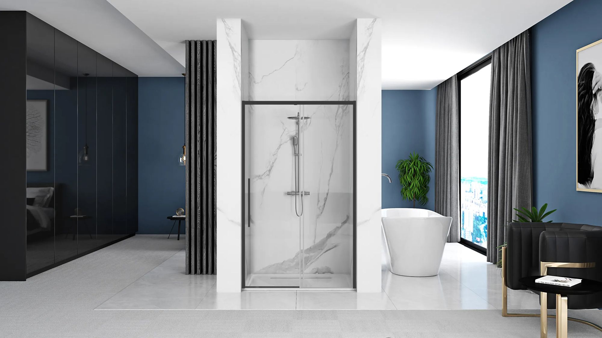 Nasze drzwi prysznicowe przesuwne to połączenie funkcjonalności i nowoczesnego stylu, które wprowadzą do Twojej łazienki elegancję i komfort użytkowania. Wykonane z najwyższej jakości materiałów, zapewniają trwałość i estetykę na lata. Drzwi przesuwne zostały wykonane z wytrzymałego szkła hartowanego, które cechuje się wyjątkową odpornością na uszkodzenia mechaniczne i zmiany temperatury.