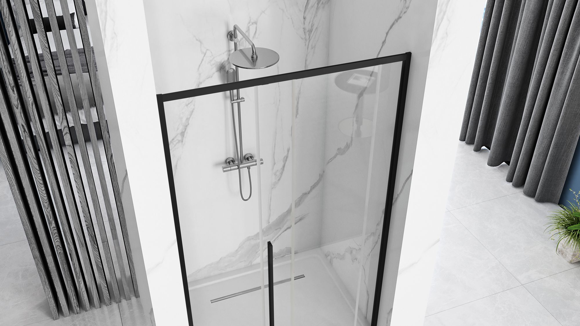 Nasze drzwi prysznicowe przesuwne to połączenie funkcjonalności i nowoczesnego stylu, które wprowadzą do Twojej łazienki elegancję i komfort użytkowania. Wykonane z najwyższej jakości materiałów, zapewniają trwałość i estetykę na lata. Drzwi przesuwne zostały wykonane z wytrzymałego szkła hartowanego, które cechuje się wyjątkową odpornością na uszkodzenia mechaniczne i zmiany temperatury.