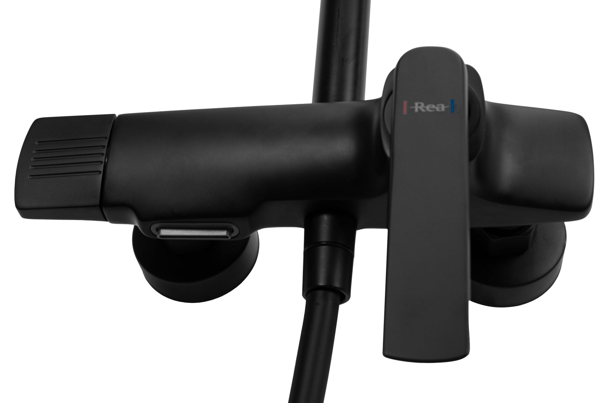 - W zestawie: bateria, deszczownica, ramię do deszczownicy, wylewka, wąż 1500 mm, słuchawka, uchwyt na słuchawkę, maskownice